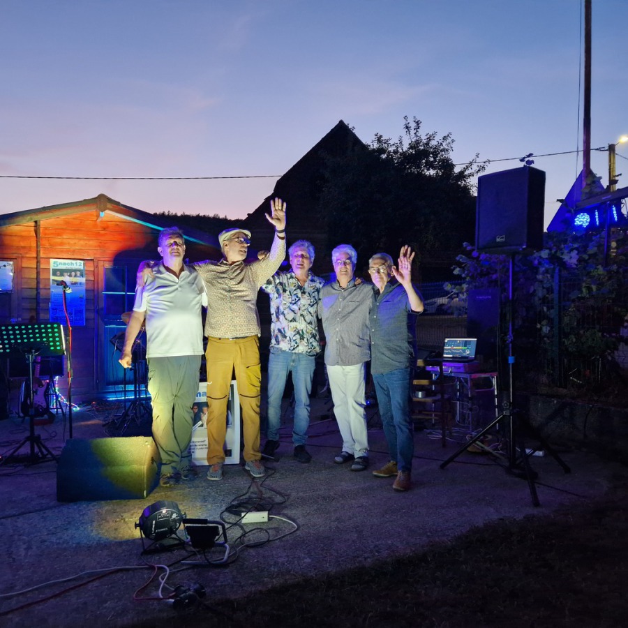Leider - oder war es ein Glücksfall? - konnte Schorsch rückenbedingt nicht schlagzeugen. Wir haben Siggi von einer befreundeten Band engagiert, so dass Schorsch im wahrsten Sinne den "Kopf" frei hatte als Leadsänger aufzutreten. Wir danken Siggi, dass er kurzfristig eingesprungen ist und einen sehr guten Beitrag geleistet hat. Eigentlich könnte man in der Konstellation öfter auftreten. Mal sehen!